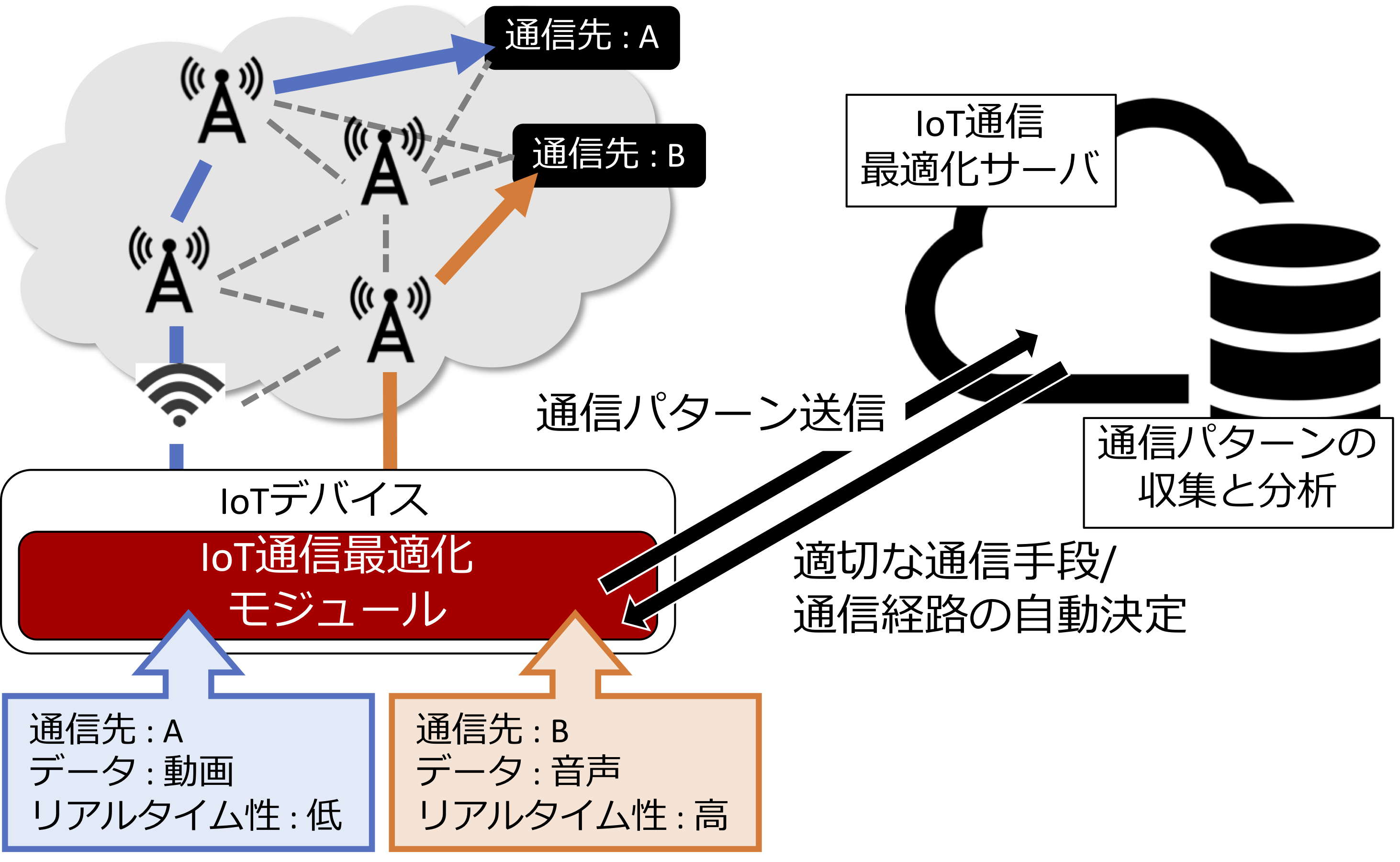 現状のIoTデバイスには起動や通知など1つのデバイスに対して1つの機能を持っている. しかし,1つの機能だけでなくコネクティッドカーなど1つのデバイスに複数の機能を持つIoTデバイスが登場し,今後そのようなデバイスが増加傾向にある. 開発者側は機能ごとに通信手段や通信経路を変える必要があるため,今後は開発者におけるネットワーク設定が複雑化が予想される. これらを解消するため,本研究ではIoTデバイスの通信量の時系列変化パターン(通信パターン)を使って自動的にネットワーク設定を行う研究を行っている. 機能ごとに通信パターンの特徴量を求め,通信先のIPアドレスをそれぞれ1機能とみなし,複数機能を持つIoTデバイスのトラフィックデータから通信先のIPアドレスごとに通信パターンを分類している. また,IPアドレスの通信パターンを通信量を元にクラスタリングし,各クラスタの通信タイミングと通信量を1つの機能の特徴量としている.