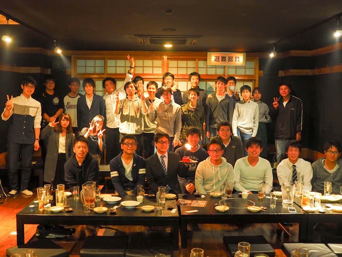 卒業式の当日に行った追いコンでは,卒業生を含め学生24名+先生+サプライズOB・OG3名が参加しました. 卒業生の抱負や,今だから言える話など,とても楽しく盛り上がりました.