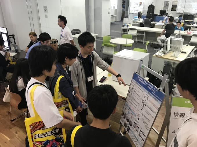 愛知工業大学では2019年7月20日(土)・21日(日)に オープンキャンパス が行われました. 梶研究室では研究紹介をB3・B4を中心に研究紹介を行い,それぞれ自分たちが行っている研究を伝えることができました. もし興味を持った高校生のみなさん,愛知工業大学およびKajilabにてお待ちしております.