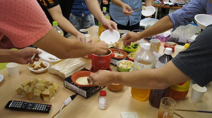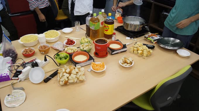 8月24日に開催された「学生スマートフォンアプリコンテスト」,8月28〜31日に開催された「IWIN2016」,9月12〜13日に開催された「電気・電子・情報関係学会東海支部連合大会」の3つの発表に参加された方々のお疲れ様会を行いました. 研究室内でパスタやチーズフォンデュ,チョコフォンデュなどを作り食べました. とても賑やかで楽しい会になったと思います.(バケットは裏側から切るべし…)
