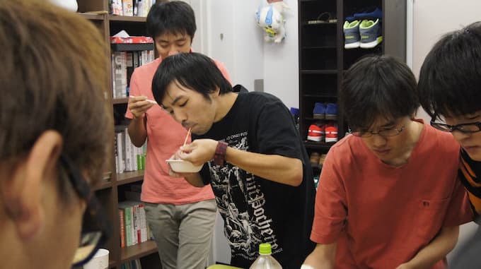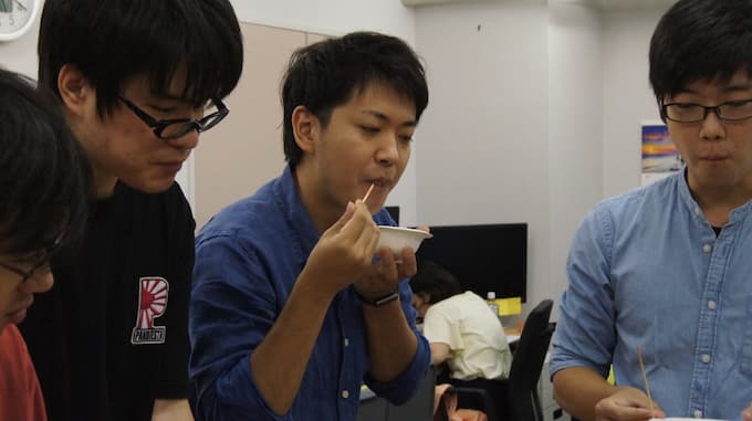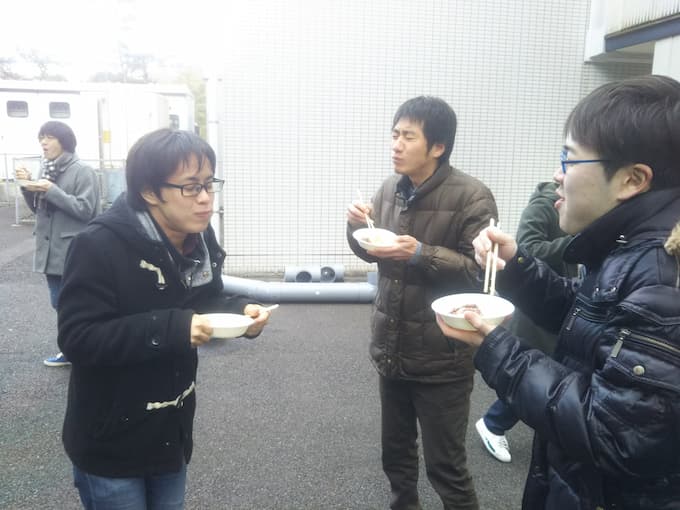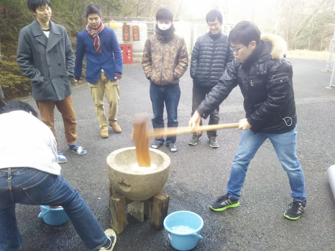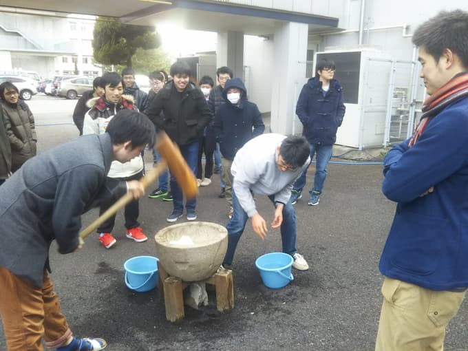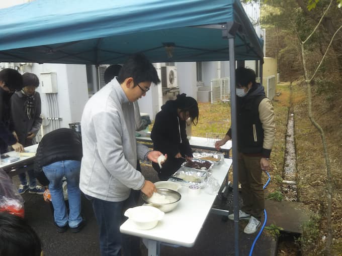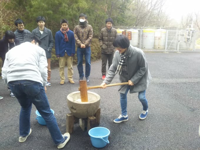 2017年2月7日,忘年会で出ていた「餅つき大会をしよう!」という案が現実になりました. 今回は梶研メンバー18名と,内藤研メンバー10名の総勢28名という,規模が大きめのイベントとなりました. きなこ,あんこ,大根おろしの三種類の味付けが用意され,皆賑やかに食べていました.(きなこ舞い,味の可能性を見出す…)