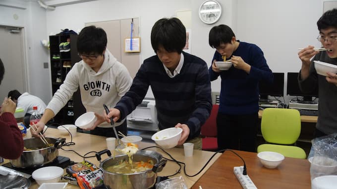 2017年1月17日に新年会を行いました. 研究室内で”すき焼き風鍋”と”豚骨しょうゆ鍋”の2種類の鍋を作って食べ,今年の抱負を発表しあいました. それぞれの抱負が達成できるような1年を過ごしたいです.