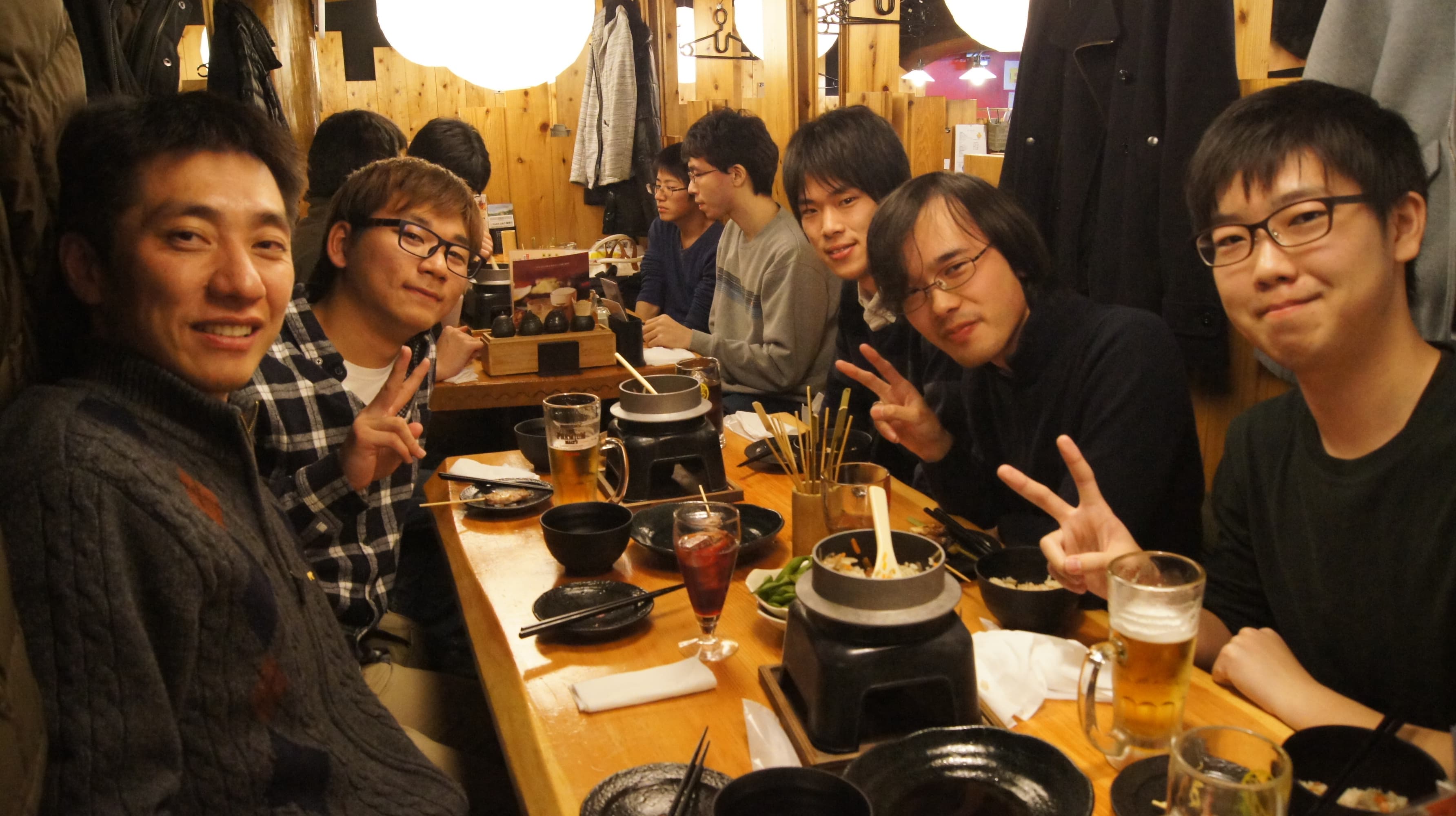 2017年1月17日に新年会を行いました. 研究室内で”すき焼き風鍋”と”豚骨しょうゆ鍋”の2種類の鍋を作って食べ,今年の抱負を発表しあいました. それぞれの抱負が達成できるような1年を過ごしたいです.