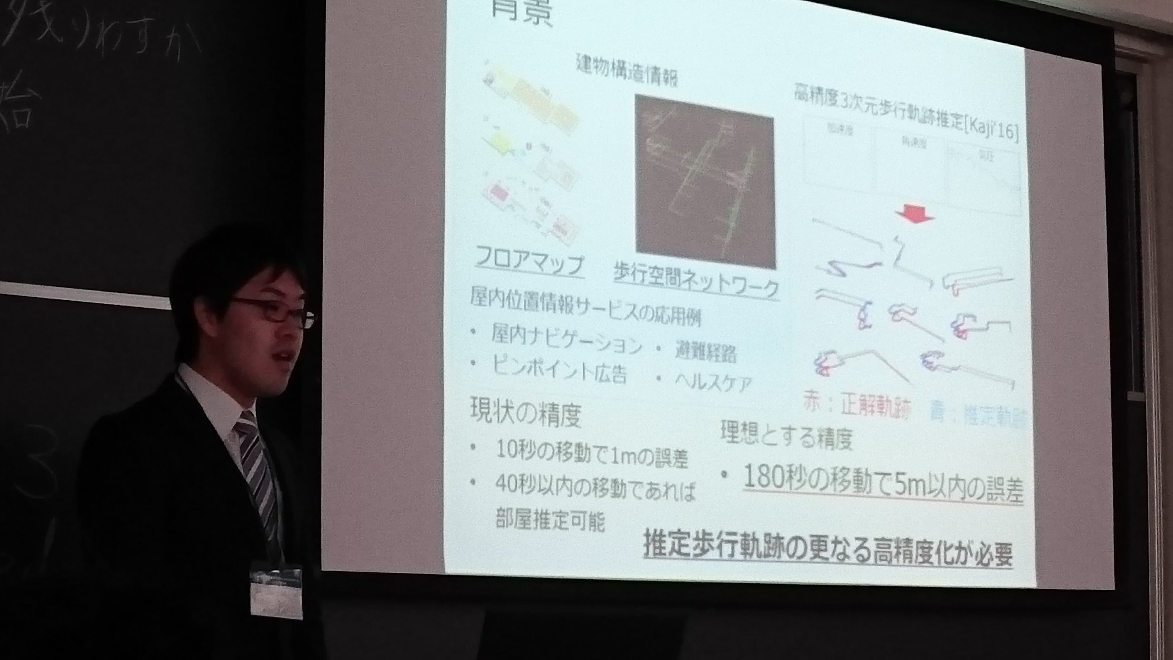 • 四ツ谷 昂亮, 伊藤 信行, 内藤 克浩, 中條 直也, 水野 忠則, 梶 克彦, 複数の同一経路歩行軌跡を用いた推定歩行軌跡の高精度化に関する検討, 第80回情報処理学会全国大会, 6S-05, pp.1-2, 2018.