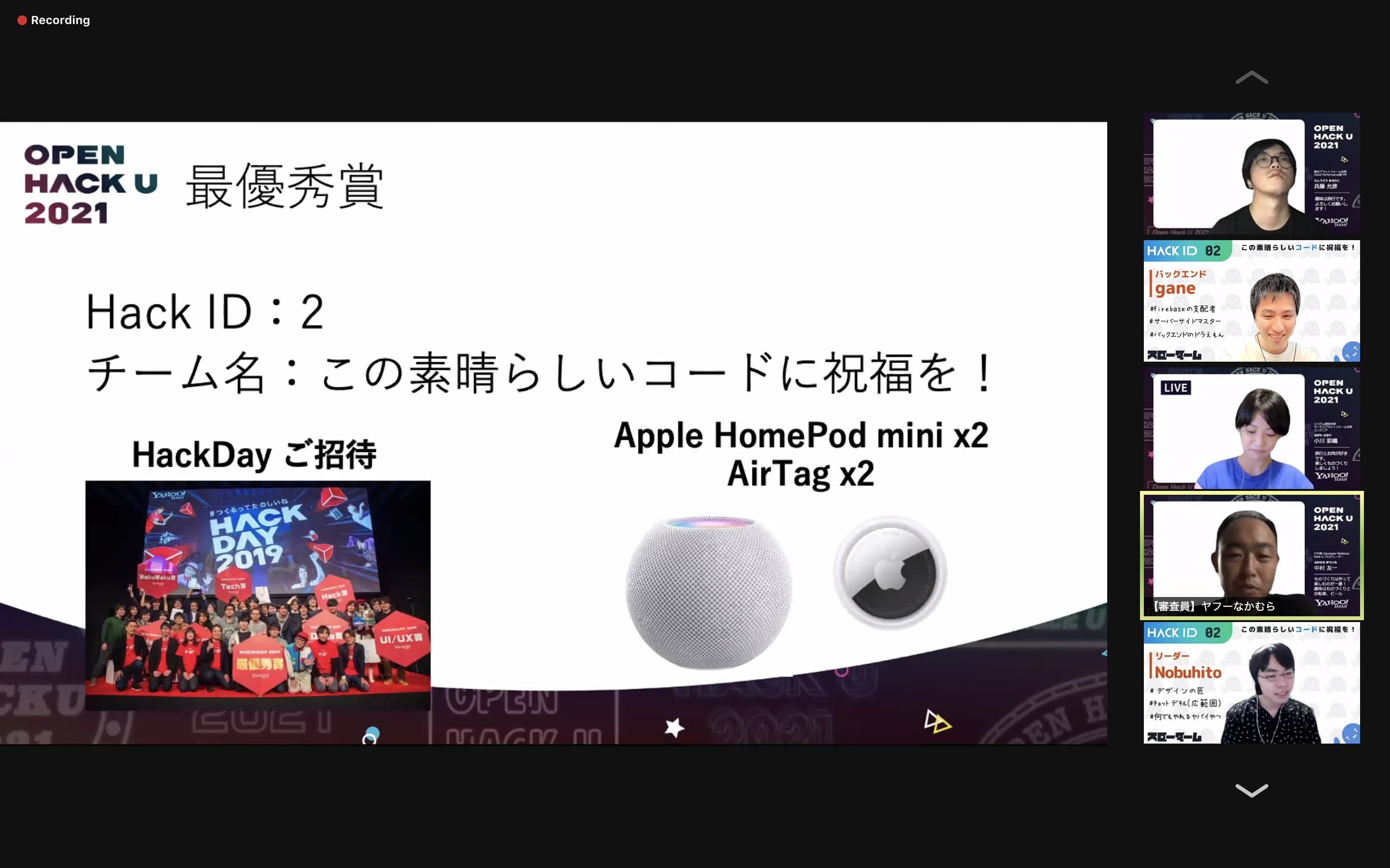 今回,開催されたOPEN Hack Uには梶研の宮川(M1),大鐘(M1),外山(B3)と菱田研の古川(M1)の計4人が参加しました.