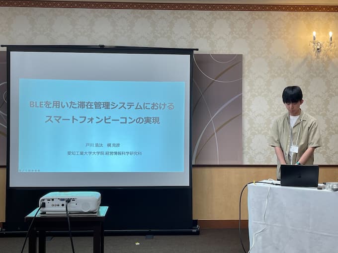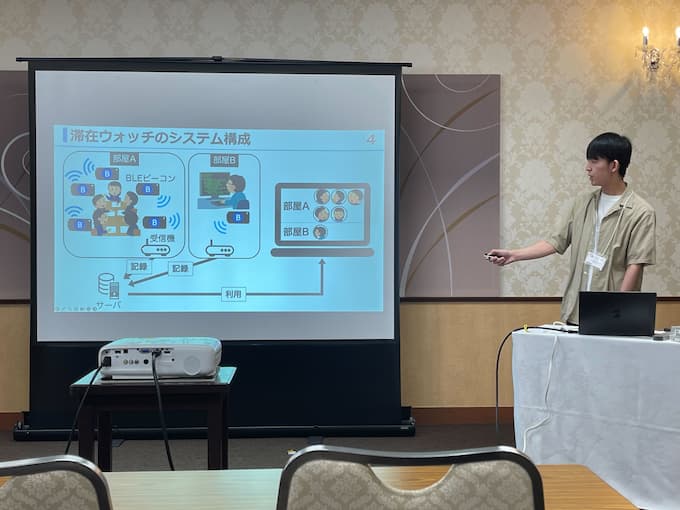 M1の上地勇輔です。 今回が初めての全国規模の学会発表だったので緊張しましたが、無事に発表を終えて良かったです。また、全国規模の学会で優秀プレゼンテーション賞を受賞することができ、とても光栄です。 受賞にあたり、梶先生をはじめ、プロジェクトメンバーや研究室のみんなのご指導とサポートのおかげです。大変感謝しています。今回の経験を糧にし、今後の研究に注力したいです。
