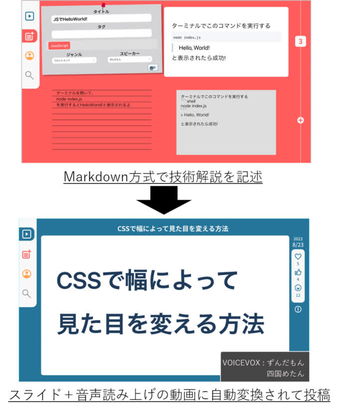 発表したアプリ「Mogy」は動画をベースのエンジニア向け情報共有サービスです。 動画を用いたインプットによりテキストベースではできない「ながら勉強」を可能とし、より手軽で簡単に情報を得ることができます。 閲覧・投稿情報をグラフによって自身の勉強量が視覚化されるため、動画の閲覧・投稿に対するモチベーションも高く維持できます。