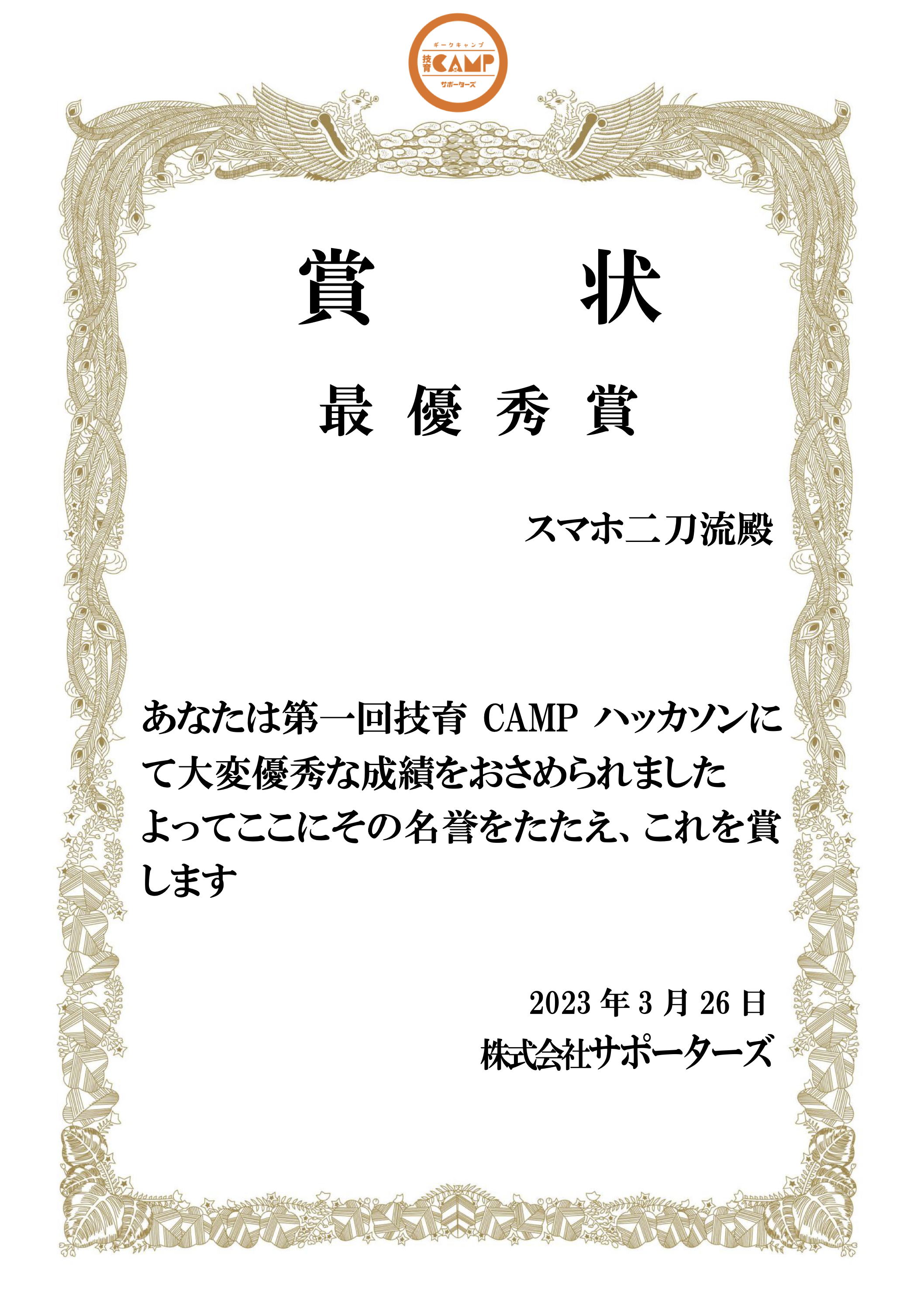 今回がハッカソン初参加かつ、インターンシップと時期が被ってしまいかなり大変でした。しかし、チームのおかげで無事に完成し最優秀賞を受賞できたので参加し て良かったと思います。
