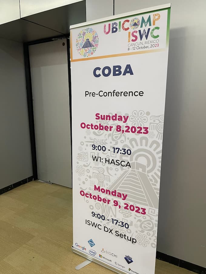 梶です.10/8-10/12にかけてメキシコ・カンクンで開催された Ubicomp/ISWC2023 の併設ワークショップ HASCA2023 においてスマートフォンと密閉袋を組み合わせた心臓マッサージ練習アプリの発表をしてきました.超リゾート地での非日常感をたっぷり味わえました.