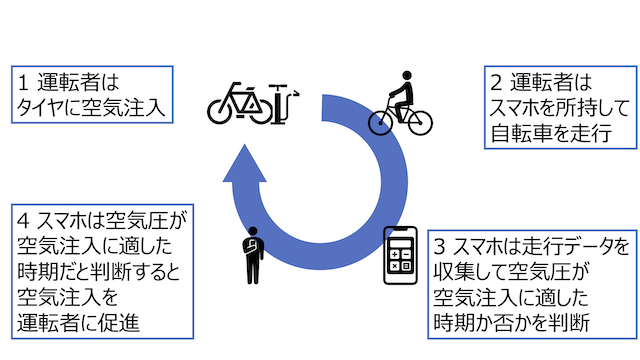 走行前に自転車点検を毎回行う人は少数で,走行中に事故やヒヤリハットを経験する人がいる.このような経験をする人を減らすために,自転車点検を運転者に促す必要がある.様々な自転車点検がある中で,本研究は空気圧点検に注目した.本研究ではタイヤの空気圧低下に伴うタイヤのクッション性の増加から,身近にあるスマホのセンサを用いて低コストで行える空気圧低下推定手法を提案する.地面に対して垂直方向の加速度をスマホで取得し,標準偏差と周波数成分を特徴量としてランダムフォレストなどを用いて空気圧低下を推定する.空気注入が必要か否かの分類と空気圧の値を推定,他の場所・自転車の学習データを流用可能かの評価実験を行った.評価実験の結果,空気注入が必要な時に正しく分類できた割合は96.1%だったが学習データの流用は困難だと分かったため,空気圧低下推定には同じ場所・自転車のデータを用いる必要がある.