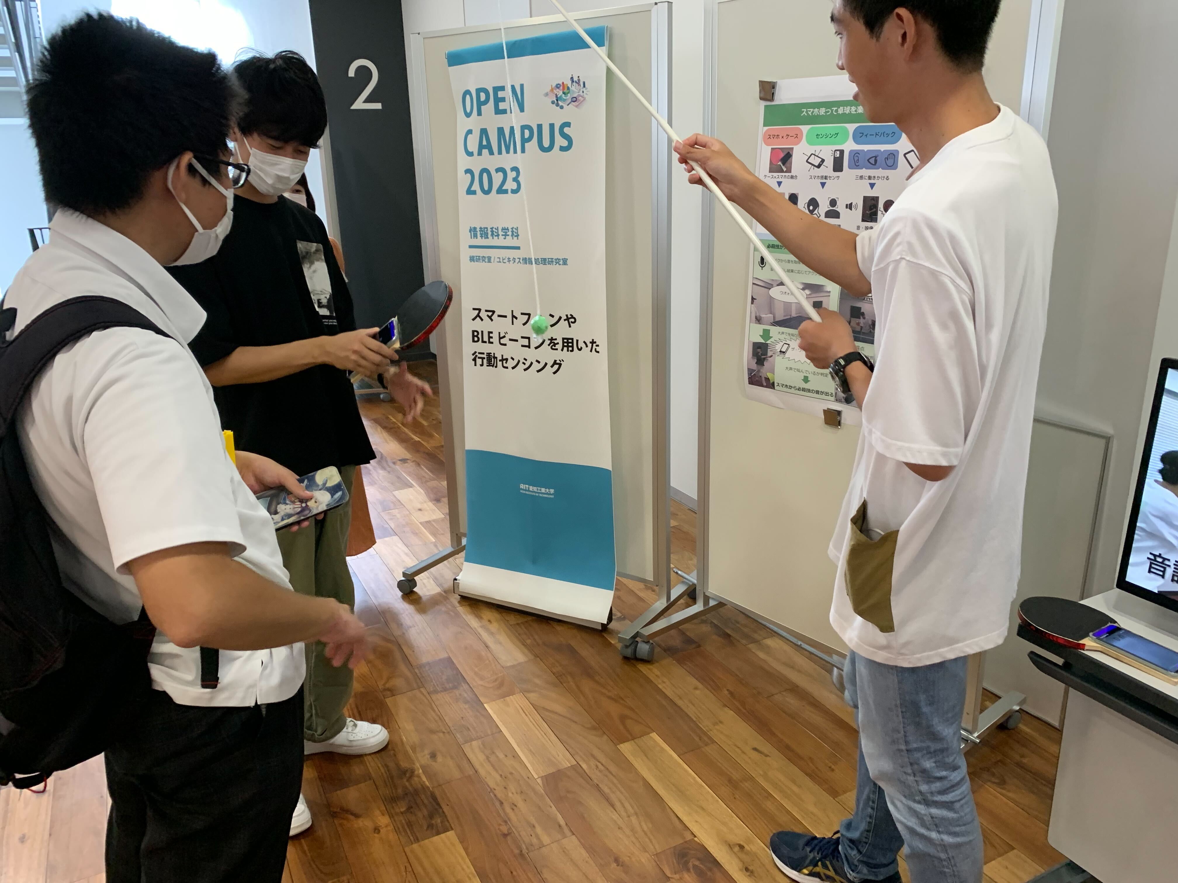 梶研究室ではBLEを用いた研究(BLEビーコンの電波強度を用いた状態推定・滞在ウォッチ)とスマホのセンサを用いた研究(心臓マッサージ練習アプリ・スマホ卓球)について紹介しました.