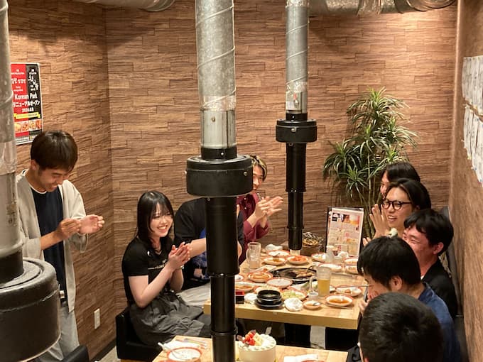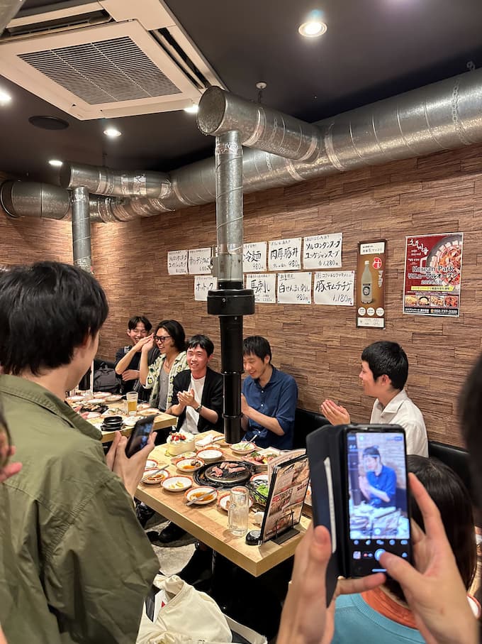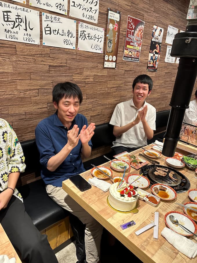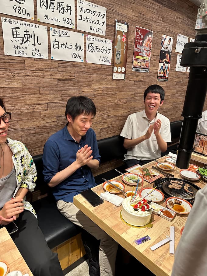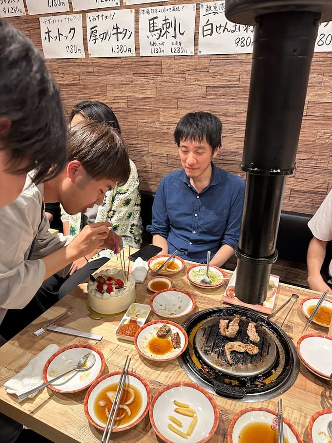 歓迎会が行われた6月6日は梶研究室の担当教授である梶克彦教授の誕生日でもありました. 梶先生のファンクラブ (非公認) でケーキを用意し,記念すべき誕生日をみんなでお祝いしました. おめでとうございます!