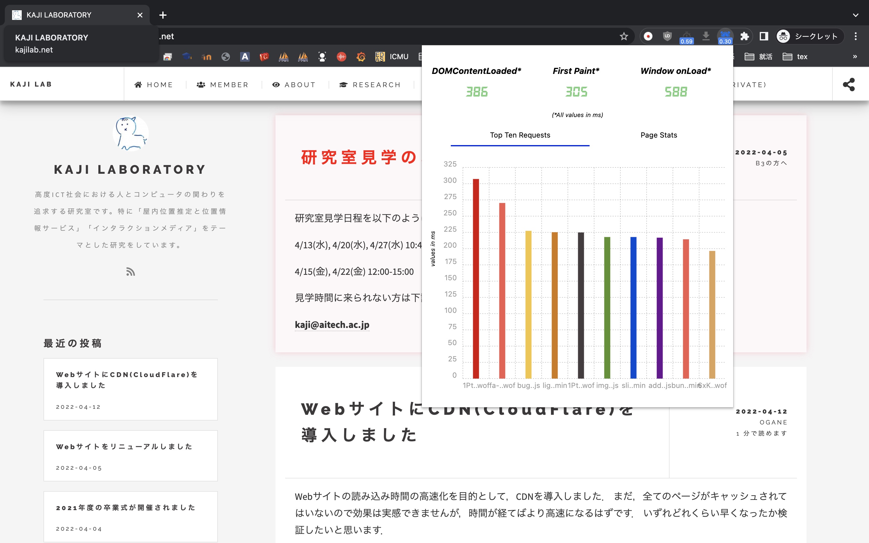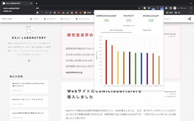 Webサイトの読み込み時間の高速化を目的として,CDNを導入しました. まだ,全てのページがキャッシュされてはいないので効果は実感できませんが,時間が経てばより高速になるはずです.