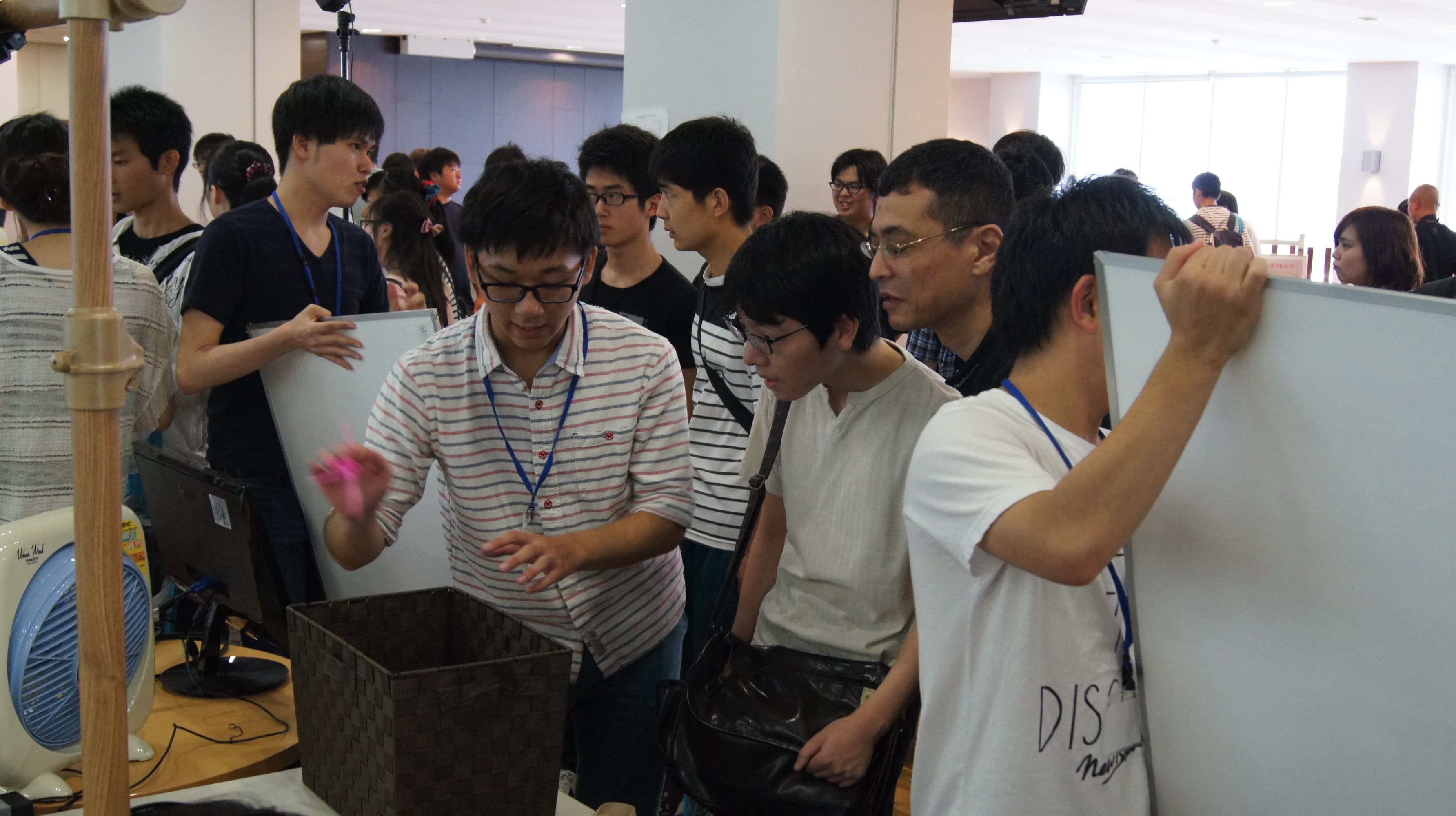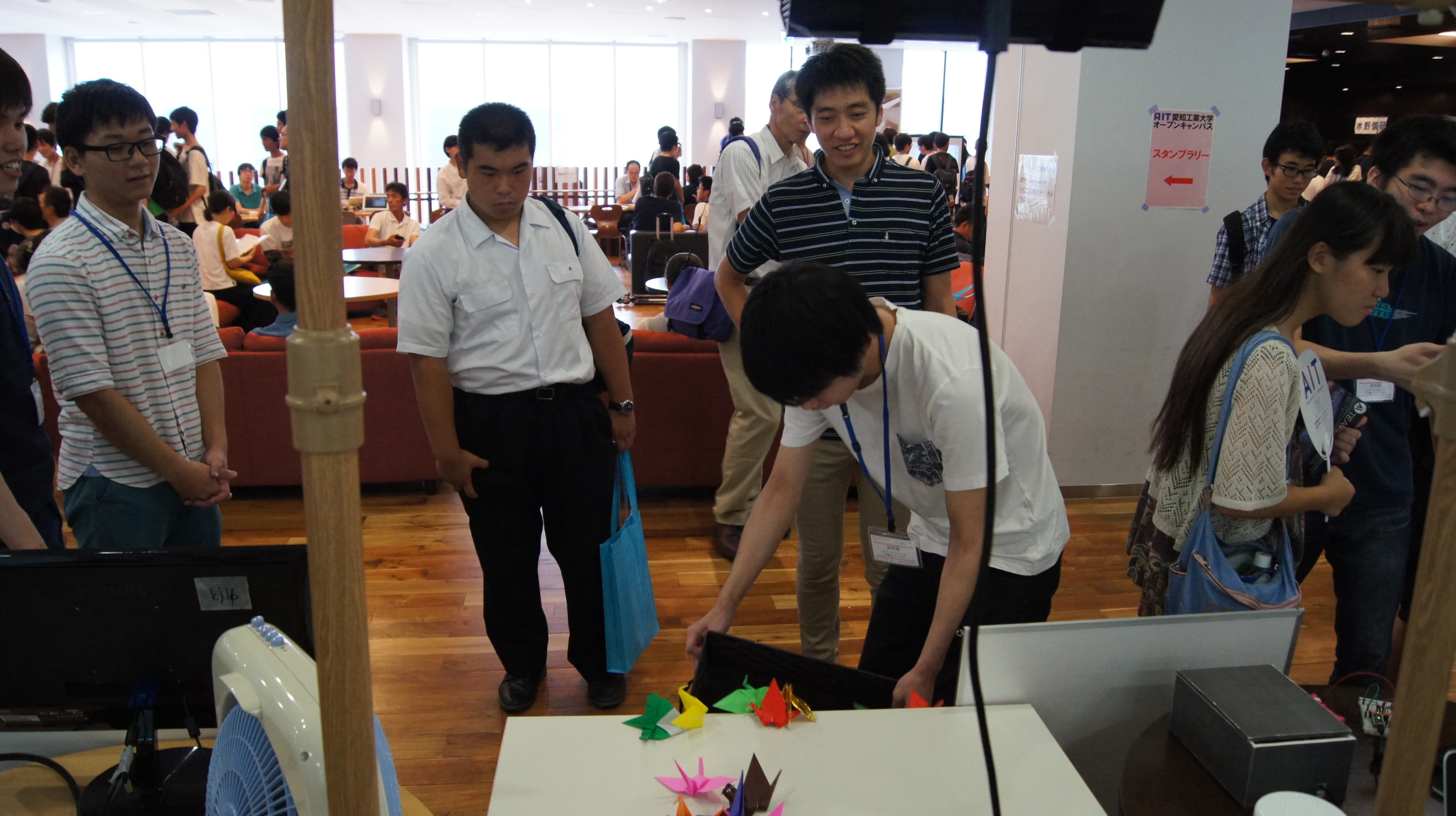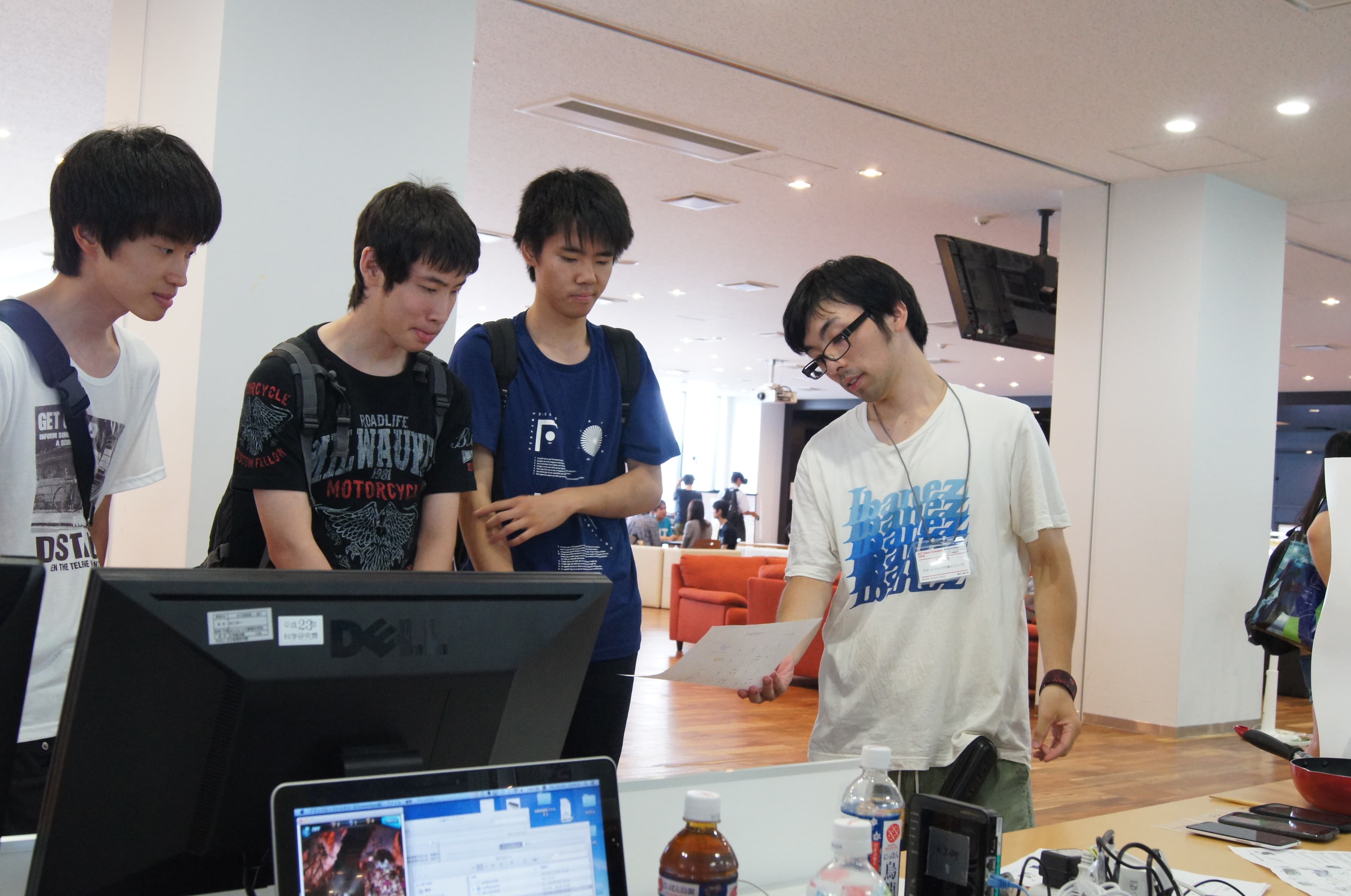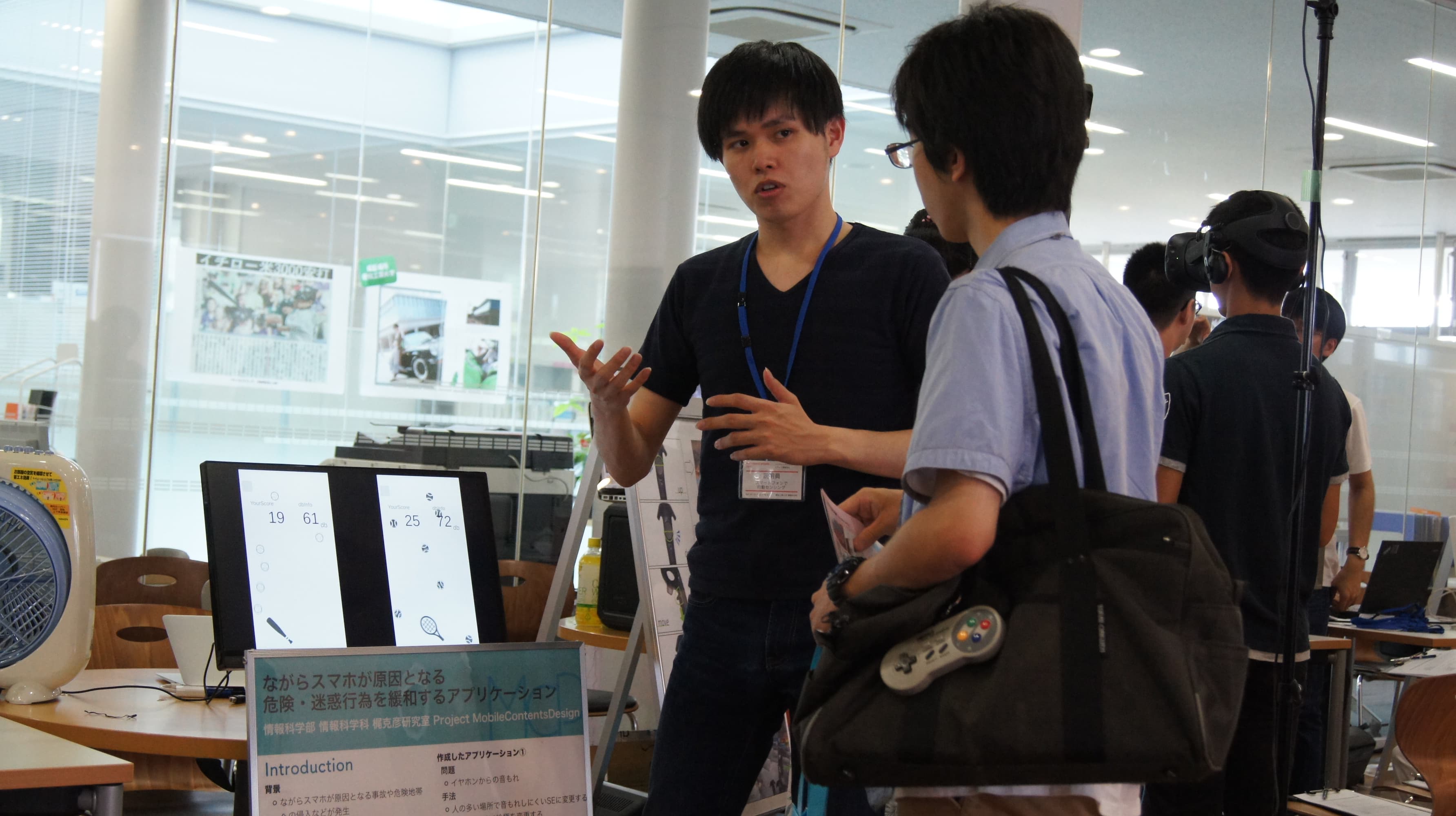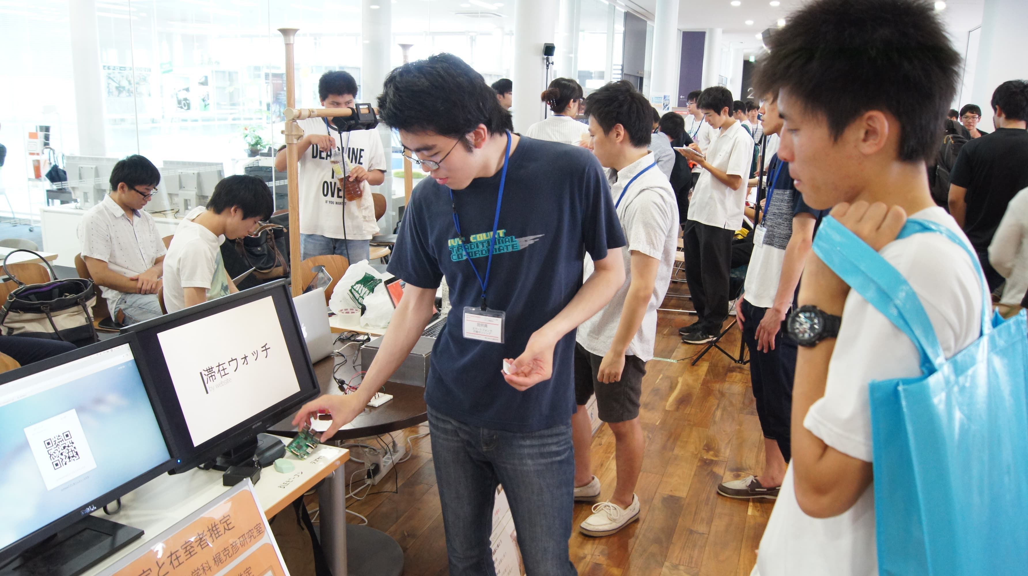 2016年7月23,24日に愛知工業大学オーブンキャンパスが開催されました. 梶研でもpdr班とリズム班が成果物を展示しました. PDR班では最近話題のあのゲームを使った作戦が刺さり,多くの方に見学していただきました. GPSでは出来ない屋内位置推定のメリットを上手く説明できたと思います. リズム班では来てくださった方々にリズム認証アプリを実際に体験していただきました. 体験者からは「これ欲しい」などの声もあり,リズム認証でアプリを操作することの便利さを伝えることができました.
