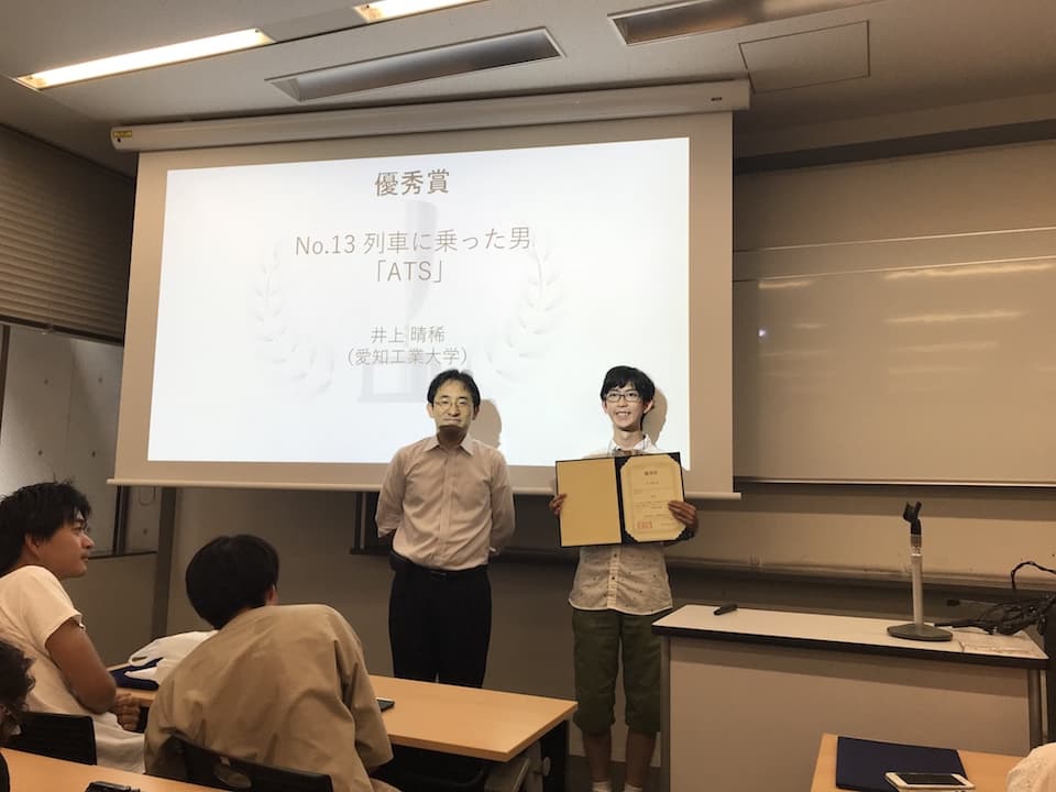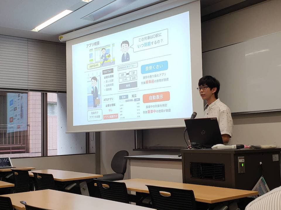 • 「ATS」(井上) : 列車に乗ったときにアプリを開いたら、乗ってる列車の時刻表を表示してくれるアプリ 優秀賞