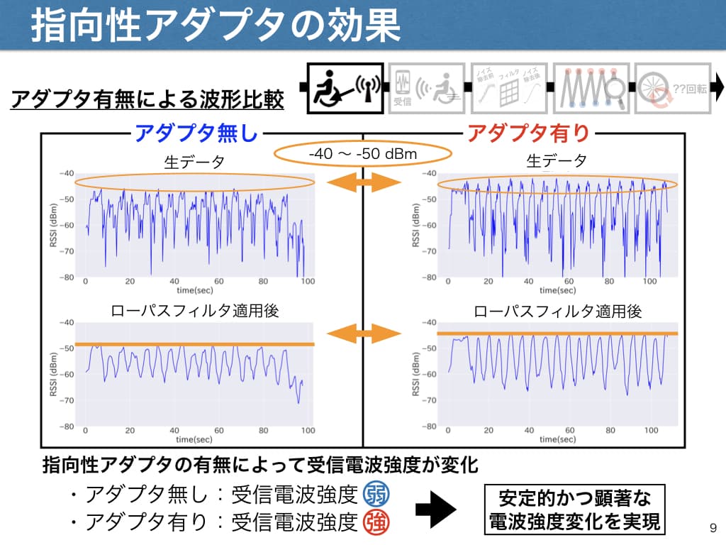 このことから指向性アダプタを取り付けることで,安定的でより顕著な電波強度変化を得ることができると分かります.