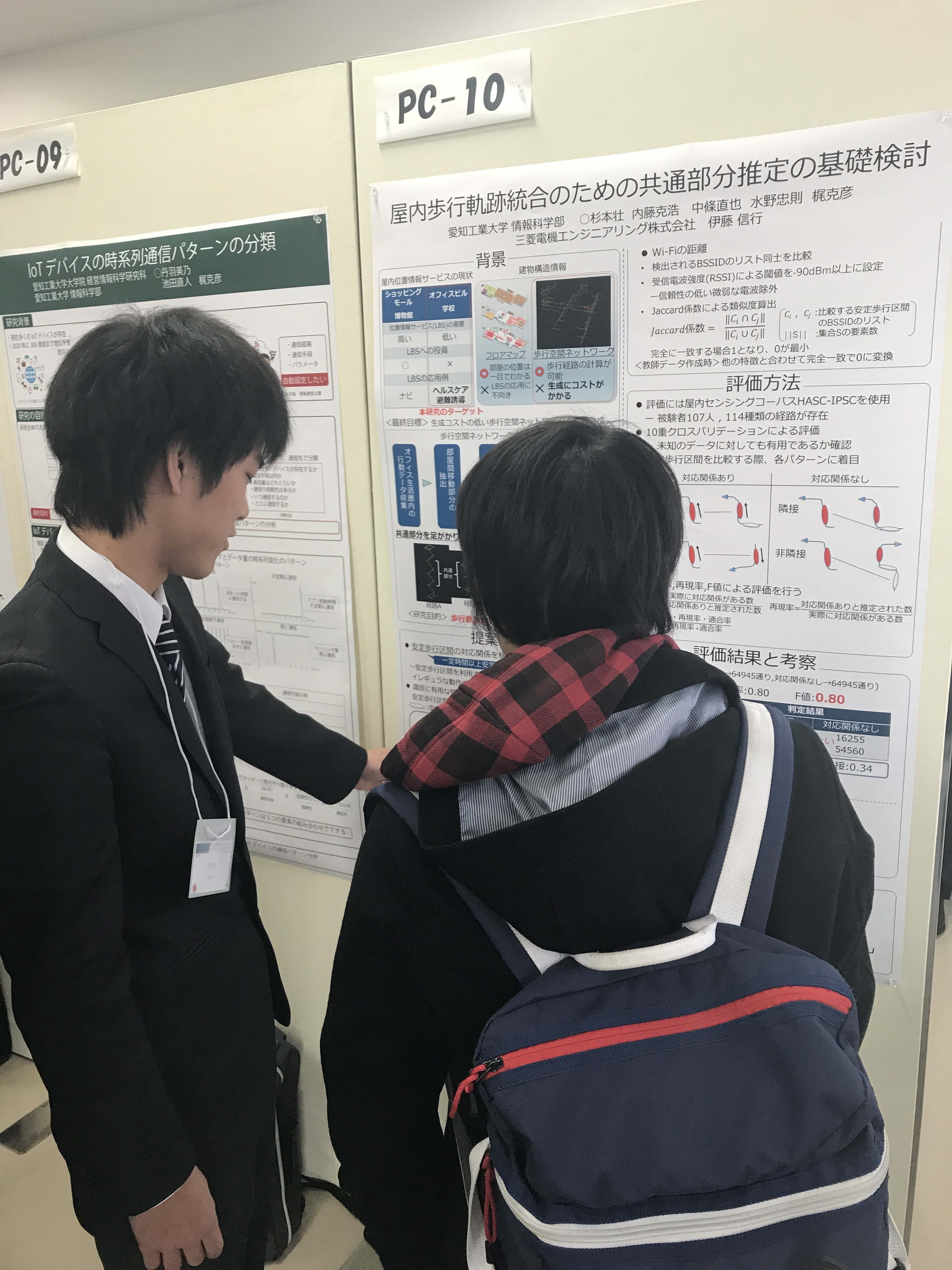 • 中島唯博,四ツ谷昂亮,杉本壮,伊藤信行,内藤克浩,中條直也,水野忠則,梶克彦,オフィス圏内行動データと部屋間移動部分の抽出,WiNF2017(第15回情報学ワークショップ).