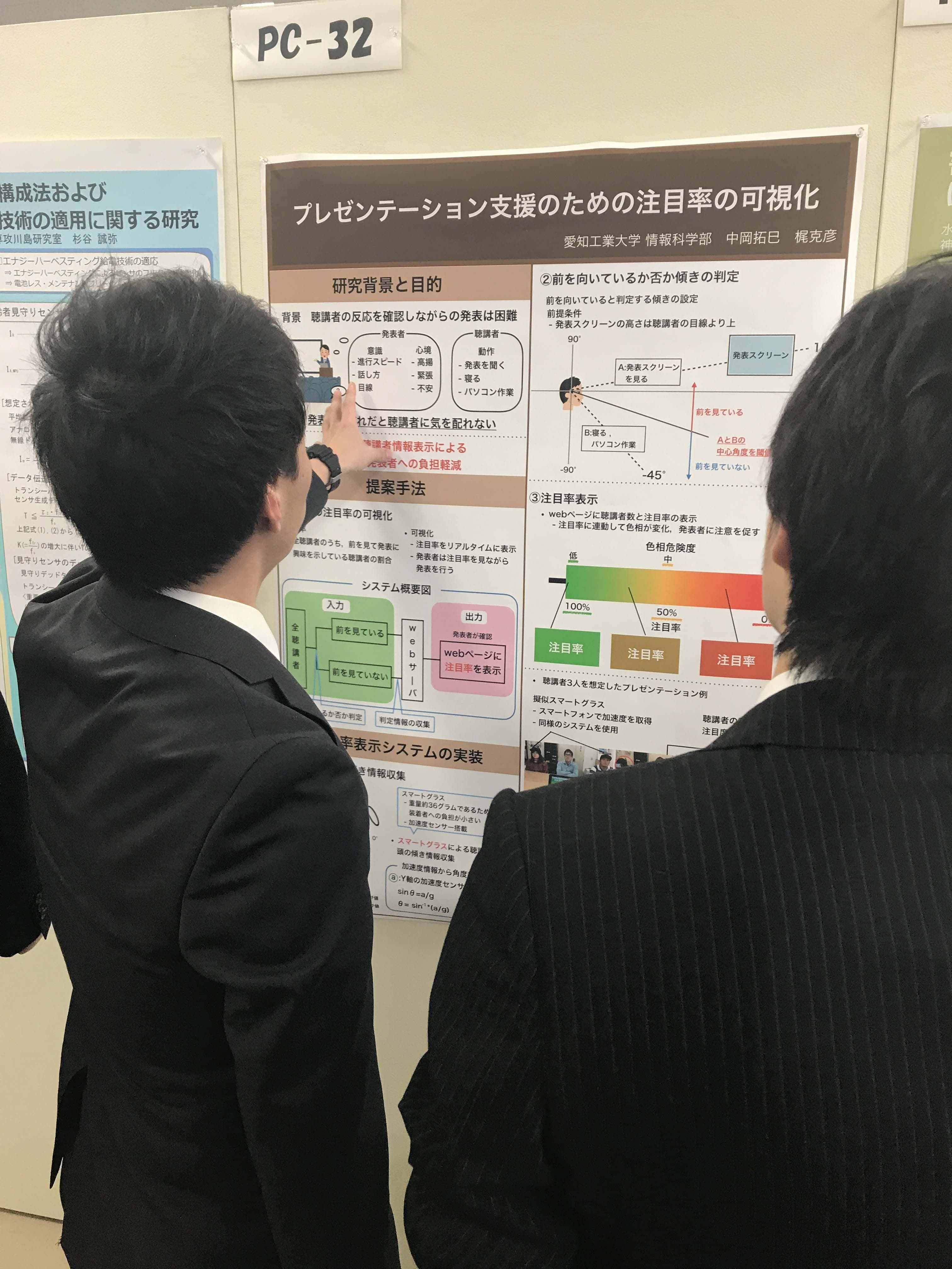 ポスター発表では,多くの方に意見を頂くことができ,気づかされることが多くありました. 今後の研究の方向性を確認できる良い機会になりました. 他の学生の発表を聞く機会もあり,知見が広がり楽しめました. また,オーラル発表を見て卒論に向けての良い勉強になりました. 全体的に参考になることや,学べることが多く良い経験となりました.